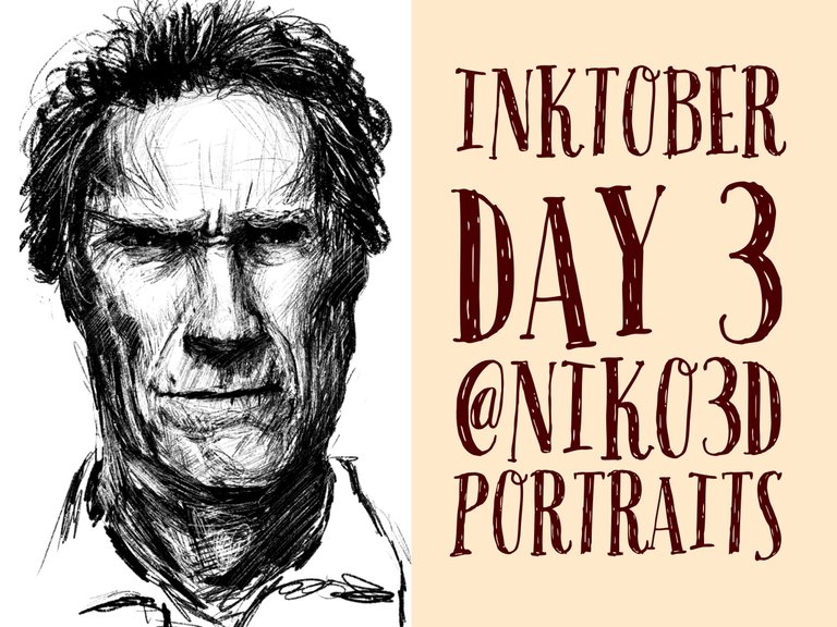 I felt the like tackling some portraits, I started with 3 portraits in different styles with no reference imagery as I find this the most difficult. Saying that getting a true likeness from photos and life drawing is difficult too, such as Clint Eastwood below.