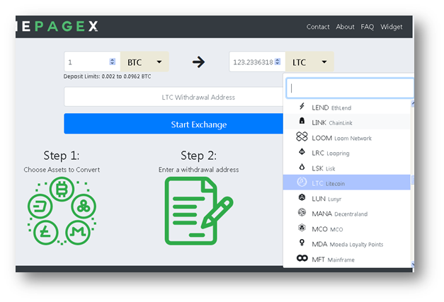 As you can see in OnePage.com, just do 3 steps to make the exchange: