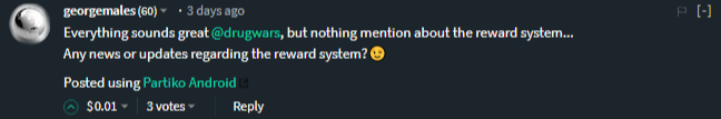 Let see what the community is saying (Comments made on DrugWars Roadmap Post)