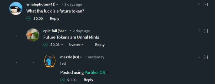 It looks to me like DrugWars has inclined more towards Obyte than Steem ecosystem lately. There is no link to steem at all, at this moment, other than the nav bar displaying the rewards in Steem (which is not true anymore). Future Token value is defined by the developers (I might be wrong on this, because its so complicated for normal user to understand how Obyte works). Bottom line is nobody wants to do all the hardwork to get that 0.01 STEEM (i.e. $0.004) daily on average via Future tokens. Instead we can use some of those PTC sites to get paid even better. Why cant steemians support another game development team who will start from scratch and can promise us good reward system forever, instead of wasting our time on DrugWars and finally getting nothing of true value. Again, the only value this game had was its real money earning opportunity, which is no longer there.