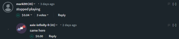 Don't be myspace of blockchain games. Do things in favor of the users and users will stick to you. You're doing great in developing this game, feature wise. Bring back a good rewarding system soon before you lose everyone.