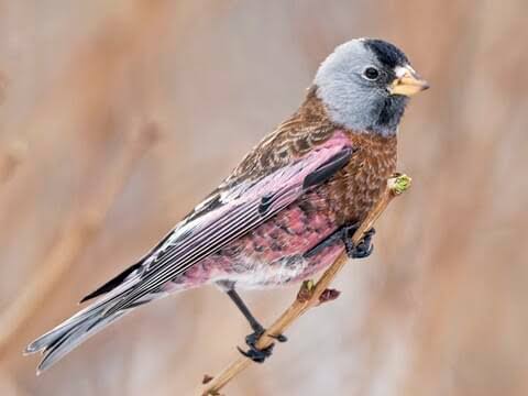 The Gray-Crowned Rosy Finch is a sturdy bird whose natural habitats are the rocky tundra of Alaska down south to the mountain ranges including the Sierra Nevada.